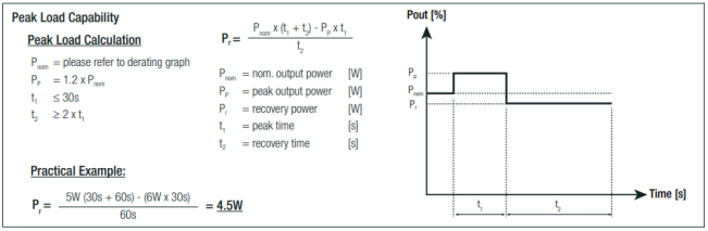 许多工程师倾向选择「余量」充足的电源,例如一个应用消耗 5W 的功率,那么会选择 10W 的电源以应付最坏的情况。这背后的理由是除了需要一定的安全系数才能获得高可靠性,也要确保以后在应用中添加功能时还有足够的电源容量来应对额外的负载。这些都是难以反驳的有力论点,但它并非总是电源应用最有效的方法。 效率曲线% 时维持平坦,表现很好。但到了 50% 负载 (5W) 时,效率根据电源电压的不同在 77% 到 81% 之间变化(图 1,橘线% 负载下,无论何种输入电压效率都维持在 83% 不变(图 1,蓝线)。这种差异看起来可能并不明显,但 77% 的效率就意味着 30% 的供应能量被浪费为热量,而 83% 的效率代表只有 20% 被浪费,大幅降低了耗散功率。 如果该电源替换成同等的 5W电源,例如 RAC05-12SK/277,那么效率将不受电源电压影响保持在 83%(图 2)。 另外,它不仅工作效率更高,5W电源的尺寸也只有10W的一半而且还更便宜:这是双赢! 您或许会问,那峰值功率呢?在最坏的连续负载条件下,电源要如何应对额外的短期峰值过载? 这里的关键词是「最坏的情况」。在正常运行期间负载通常会低于功率需求。如果转换器在最坏的负载情况下连续工作,它仍然可以轻松处理这样的功率水平,而实际上负载也不会那么高。这为转换器提供了一些「热余量」来处理高于连续工作负载的短期峰值过载。 例如,RAC05-SK/277 规格书提供了峰值负载能力的计算公式(图 3): 这里的一个重要的数值是 PP – 峰值输出功率。RAC05-SK/277 的标称输出功率为 5W,而实际上它可以在不触发过载保护的情况下提供 6W。过载如果低于标称负载的 120%,转换器内的器件温度是限制因子。如果转换器有足够的时间在过载之后冷却,它就可以承受多次过载或循环过载,同时持续提供稳定的输出电压。 如要应付非常短暂且严重的过载,可以安装一个外部输出电容来提供所需的峰值电流并阻止转换器启动过载保护。这对无线连接微控制器等应用来说很实用,虽然传输突发期间的电流峰值发生的时间既短功率又高,但平均功耗要低得多(图 4)。在这种情况下,电源可以针对提供平均功率而不是峰值功率来设计。 到目前为止我们已经探讨了 AC/DC 转换器,但也可以用相同的方式分析 DC/DC 转换器。它们之间的区别在于 DC/DC 转换器是专为在 80-100% 的输出功率范围内连续工作所设计的,它们的效率曲线在低负载时会下降得更快,因此低输出电流并不代表低工作温度。一般来说,应该避免 5W 负载使用 10W DC/DC 转换器,除非遇到除了降额以外没有其他方法可以满足所需的工作温度范围的情况。例如,RS12-Z 系列采用紧凑 SIP8 外壳 (21.8mm x 9.6mm) 提供出色的 12W 隔离功率。 RS12-Z 转换器使用自然对流冷却和标称 24V 电源可在高达 75°C 的温度下全功率工作,而负载降额 50% 时工作温度为 -40°C 至 +85°C。负载减半却只提供 +10°C 的环境温度范围,这是因为转换器不再以最高效率工作。即使如此,仅采用自然对流冷却就可在全工业温度范围内工作的 SIP8 封装 6W 转换器仍然大幅优于竞争对手,因为后者必须求助于强制空气冷却才能提供相同的输出功率。 许多低成本的 AC/DC 和 DC/DC 转换器都有非常基本的输出过流保护电路来侦测内部电流取样电阻器的电压降(图 5)。 图 5:基本的过流保护。电流取样电阻器两端的电压超过 0.7V 时会导通NPN 晶体管并断开功率 FET 的栅极驱动。 这种保护电路虽然简单而且作为短路保护非常有效,但触发点在很大程度上是由电流取样电阻器的容差和 NPN 晶体管的 VBE 阈值电压而定,造成过流限制的变化很大。因此要确定器件值以便在 100% 负载下过流保护不会在环境工作温度范围以上时误触发。这使转换器在室温下具有非常宽的过载容量 — 通常高达标称输出功率的 140%。这种转换器可以在连续满载的情况下可靠工作,同时仍有很大的余量来应付任何过载状况。 这个概述有一个例外,DC/DC 开关稳压器通常以较高的开关频率工作来缩小器件尺寸(降压转换器增加频率会减少输出电感和输出电容),因此如果遇到突发峰值过载时会有较少的功率储备。电流取样电阻器通常与主控制器 IC 集成在一个芯片上,具有更严格的电阻值容差从而降低过流限制的变化。此外,大多数开关稳压器控制器也使用精确的比较器输出来监测逐周期电流限制,而不是依赖不精确的 Vbe 结点阈值电压,因此达到过流或短路保护的极限时它们会立即关闭。由此可见,应该考虑 DC/DC 开关稳压器在最坏情况下的峰值负载条件而非平均负载。 超规格过度指定 AC/DC 或 DC/DC 转换器来应付瞬态峰值负载,就好像它们是一个连续状态,不但会降低效率同时还可能导致电源供应量超出必要范围。通过了解应用的平均、最坏情况和峰值负载等条件,才能选择最适当的解决方案来确保以较低的成本提供可靠的电源电压。我们的技术支持工程师或技术销售团队可以为您的应用提供最好的建议。