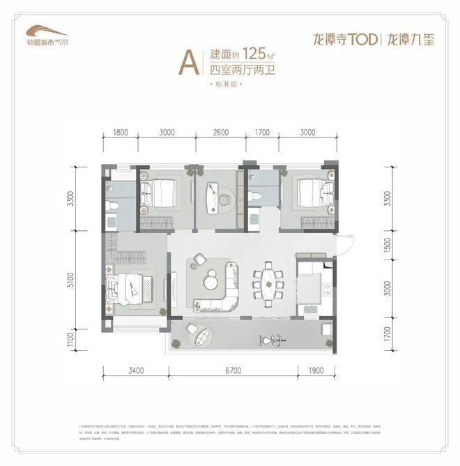 主力125㎡的套四户型,融合了一期销售过程中客户对居住体验的反馈,采用了大平层才会使用的LDK一体横厅设计,在空间利用与视觉效果方面,营造出宽敞舒适的居住氛围,同时在生活便利性与互动性方面提供多种可能。