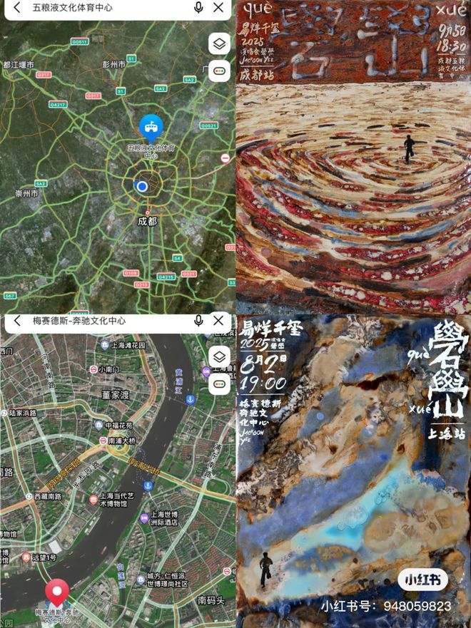 有网友发现,两张海报的构图恰好对应演出地点的地图轮廓,而奔跑的小人位置精准指向具体演出场馆,巧妙有趣,不过这点可能只是一个巧合。