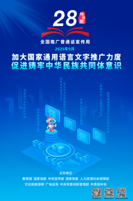 经国务院批准,自1998年起,每年9月第三周为全国推广普通话宣传周(简称推普周)。今年是第28届推普周,主题为“加大国家通用语言文字推广力度,促进铸牢中华民族共同体意识”。
